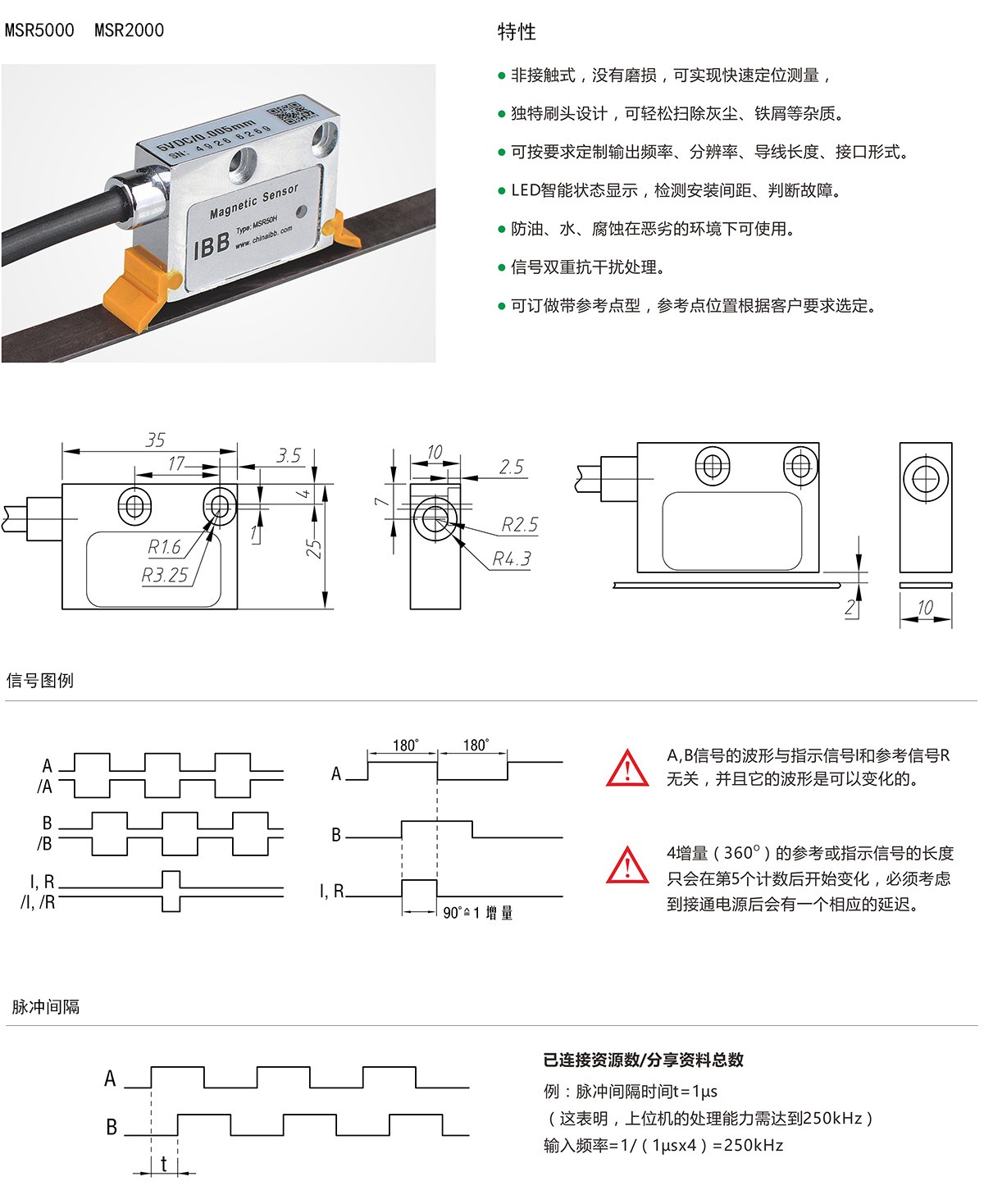 2,當傳感器運動速度過快、距離磁柵尺過遠或沒有感應到磁柵尺時,紅色LED點亮告警(需要重新上電清除錯誤)正常工作時綠色LED點亮,橙色LED閃爍代表絕對值位置錯誤。